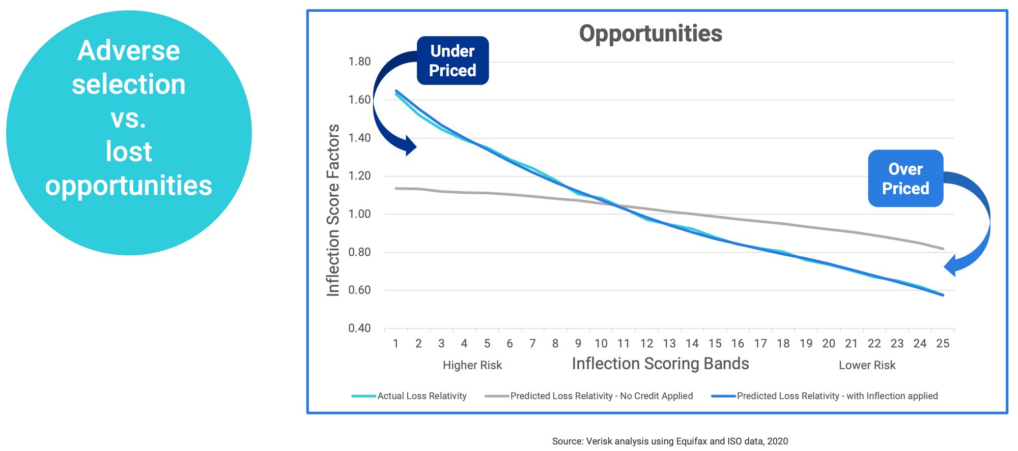 2 Verisk analysis of 30 million anonymous credit-active consumer records using Equifax and ISO data, 2020, 2.8 times lift between the lowest and highest risk bands in predicting losses over control models that don’t include credit-based attributes.