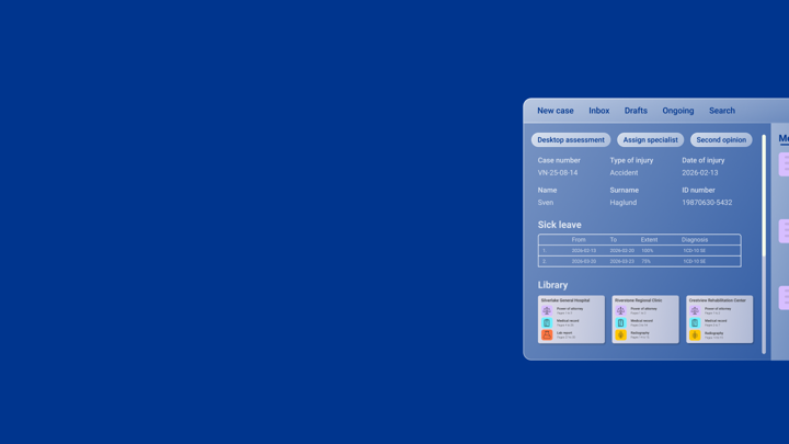 Som medicinsk rådgivare i Mavera DSS får du ett strömlinjeformat arbetsflöde. Ta emot och bedöm ärenden snabbare än någonsin tidigare och leverera välstrukturerade bedömningsrapporter. Vårt system är designat för att du ska kunna maximera din expertis.